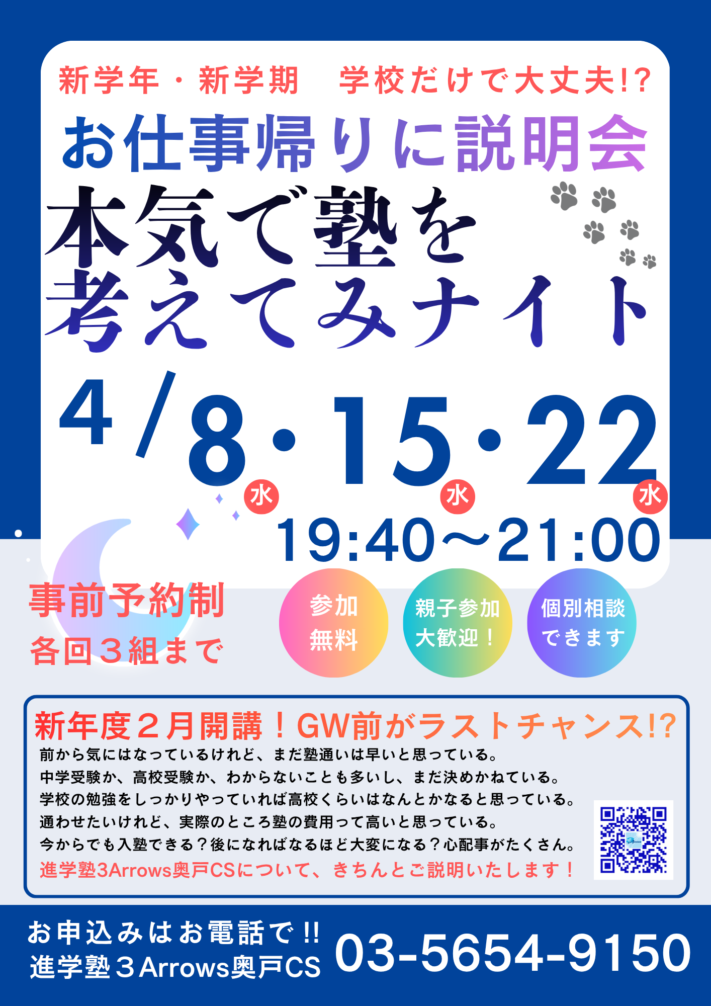 4/8・15・22 お仕事帰りに説明会 本気で塾を考えてみナイト
