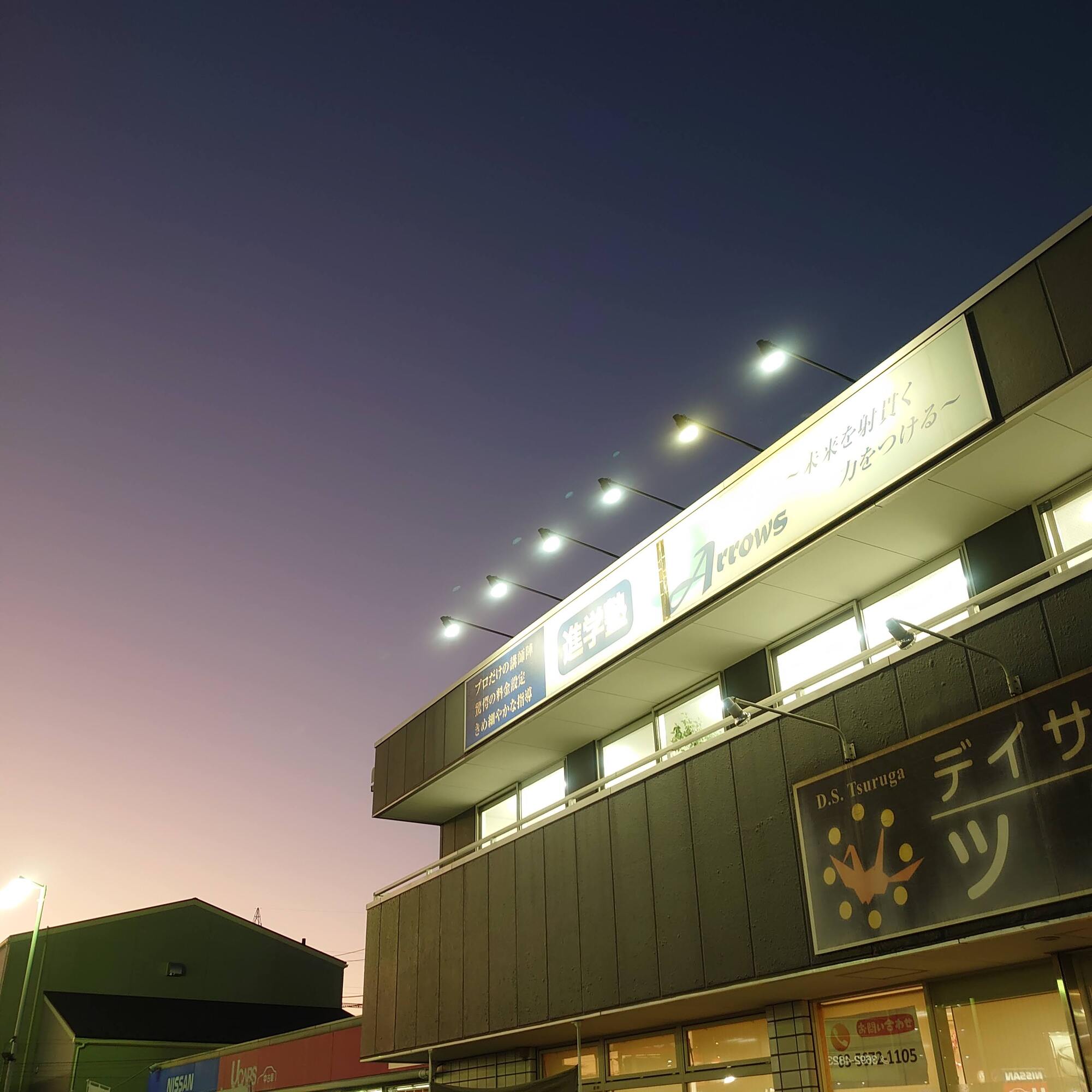 ビル1階に入る「デイサービス ツルガ」さんの灯りがとても温かく感じます。