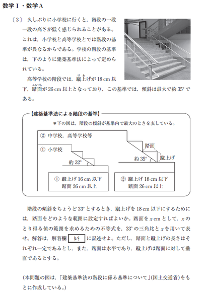 共通テストでは、身近なテーマについて問題文を読ませたうえで数学の知識を必要とする設問が出題されています。
