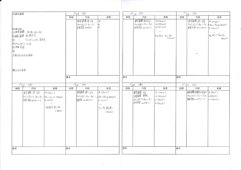1週間の中で宿題に取り組む学習姿勢や学習時間も