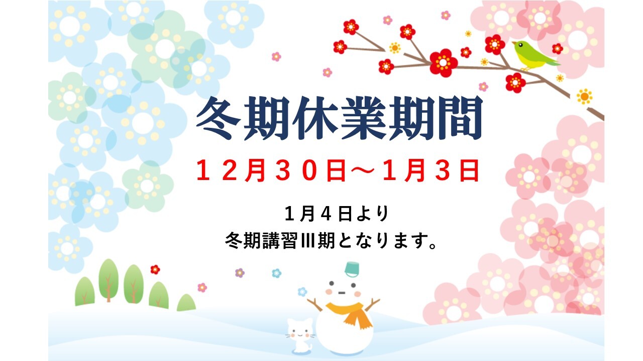 12月30日〜1月3日は、年末・年始休業期間となっています。