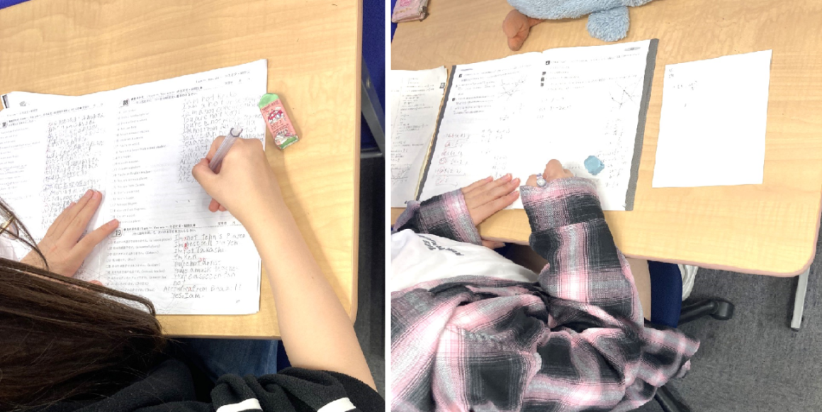 中1の英語は小学校で習ったものを書けるように、高1の数学は2次関数や図形の復習を終えたら3乗の因数分解や展開などに進みます